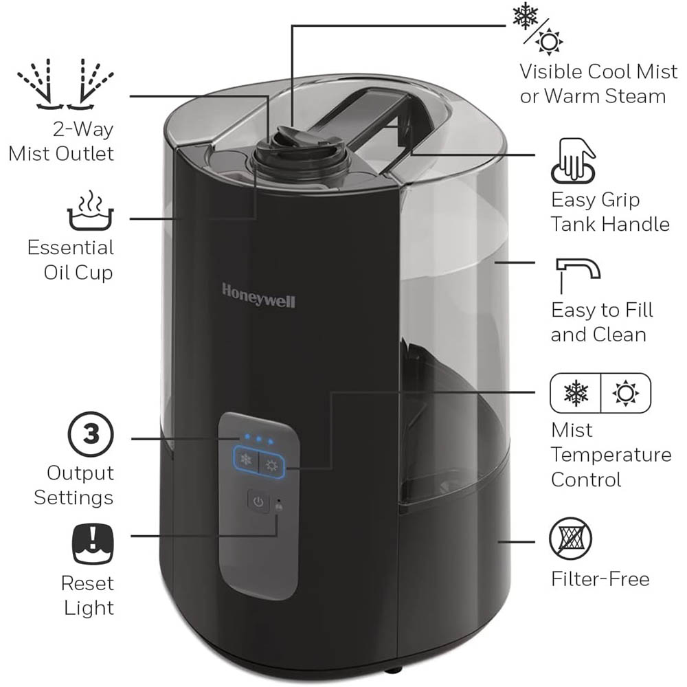 Honeywell Dual Comfort Cool + Warm Mist Humidifier, Black Reviews