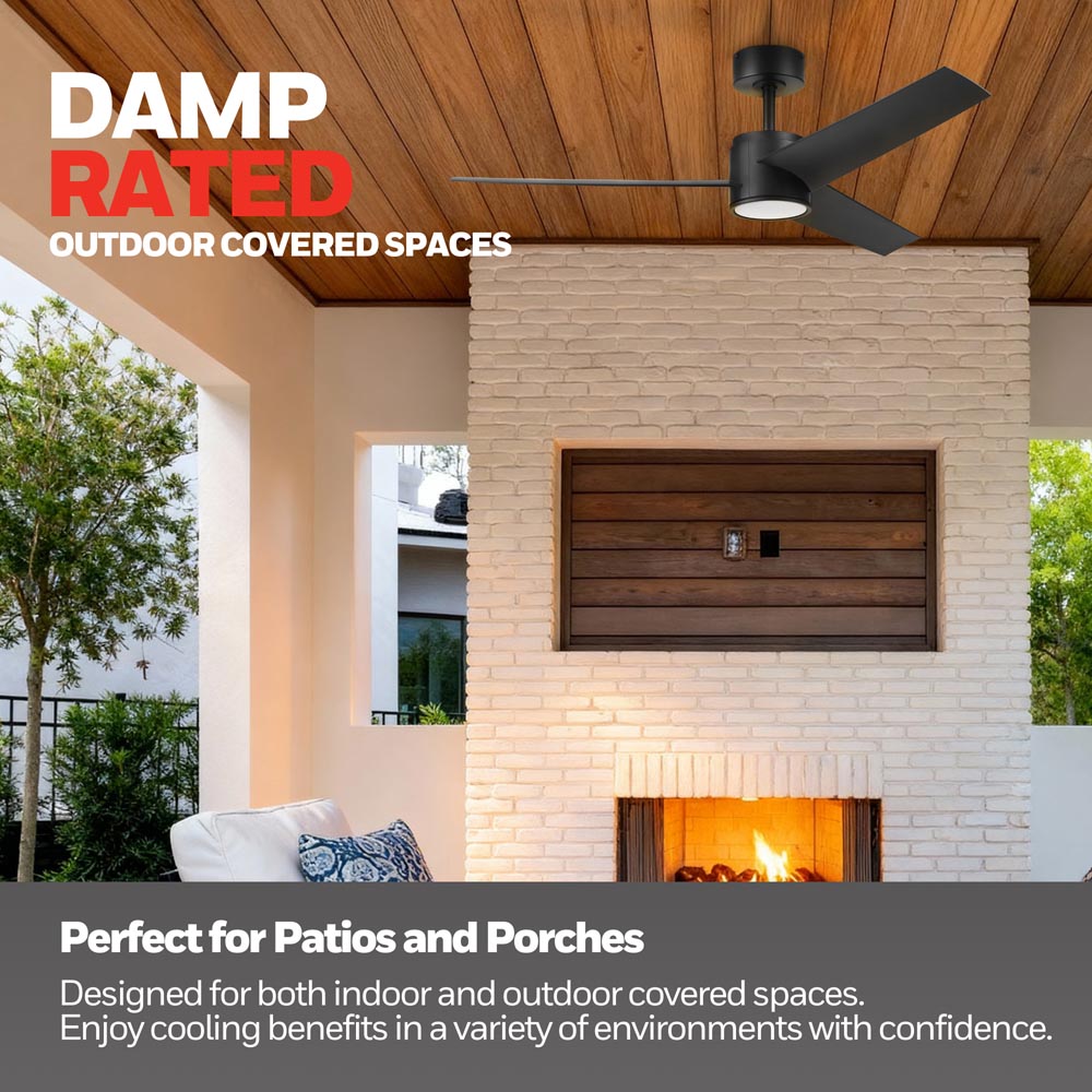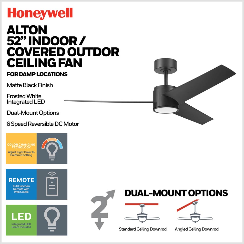 Honeywell Altan Indoor or Covered Outdoor Ceiling Fan with Adjustable LED Light, 52-Inch, Matte Black - 53061-03