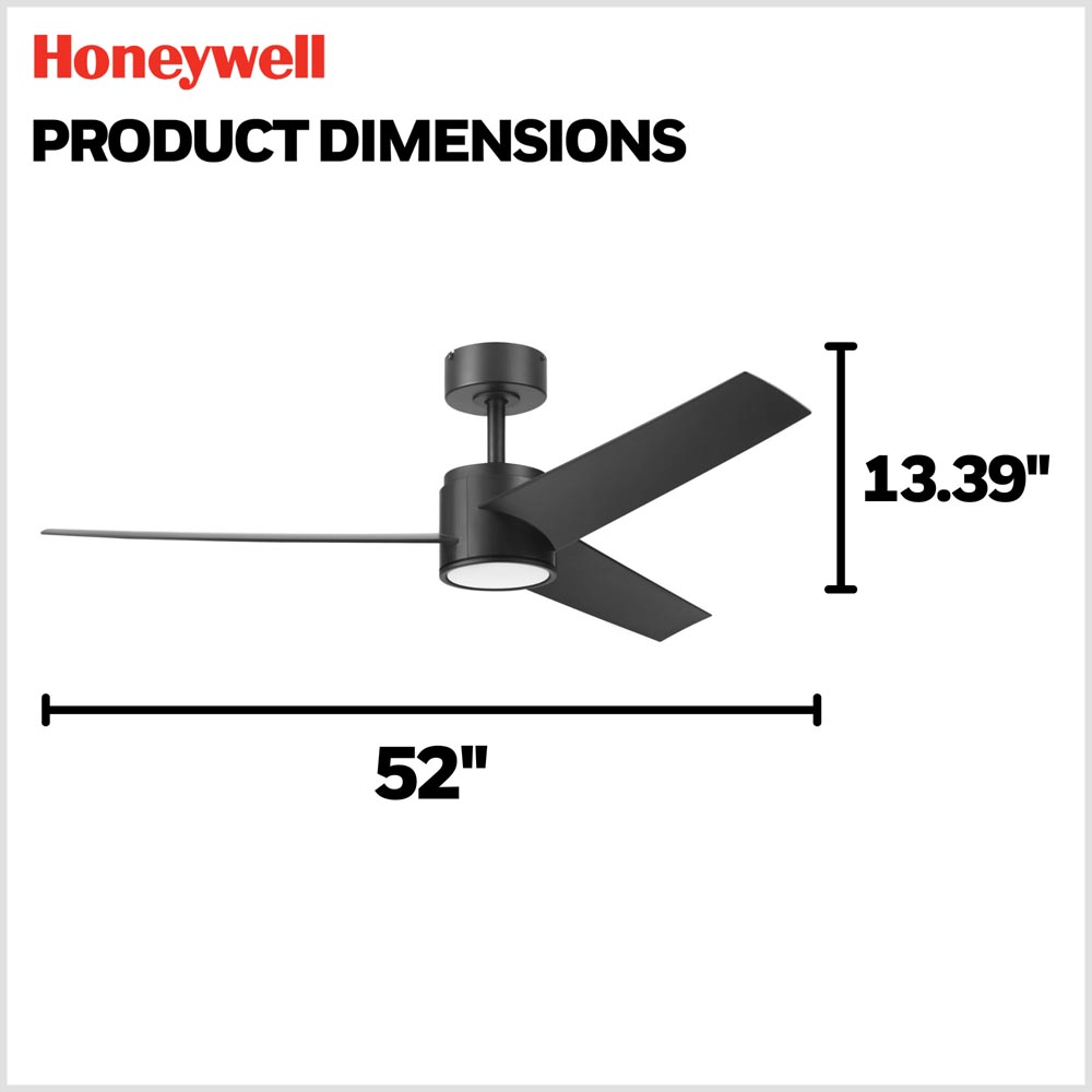 The Honeywell Altan 52-inch ceiling fan blends modern style with advanced performance for today’s living spaces. The sleek matte black finish delivers a clean, minimalist look ideal for modern and industrial-inspired spaces.