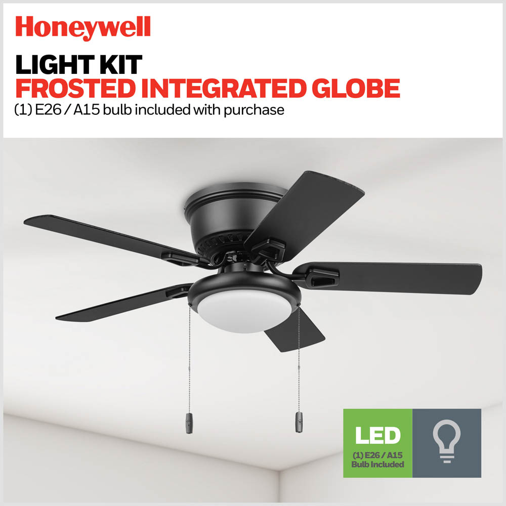 Honeywell Braystone 42 Inch Indoor Matte Black Ceiling Fan with Light & Pull Chain - 53043