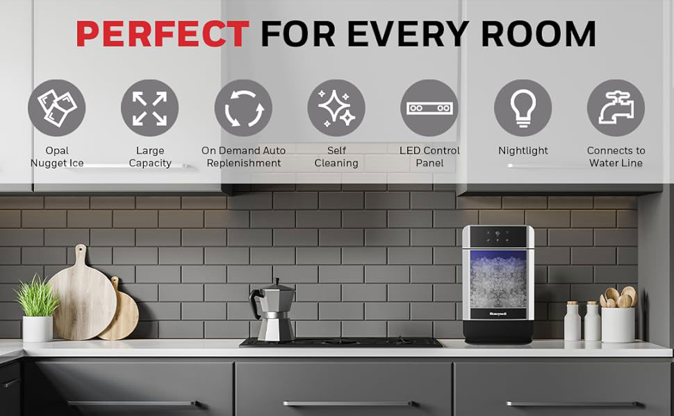 Honeywell Nugget Ice Maker, Countertop Water Line Connect Chewable Ice Machine with One Click Operation and Large Ice Storage - H-ICE2