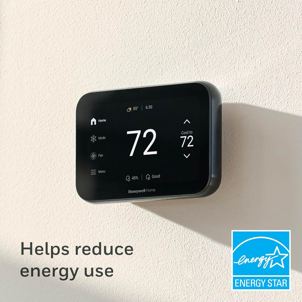 Experience a new level of comfort with the Honeywell Home X8S Smart Thermostat. It combines convenience, energy efficiency, and advanced technology to enhance your living space. The sleek 5" touchscreen display offers superb visibility and customizable color and style options, allowing you to match the thermostat's look to your home decor.
