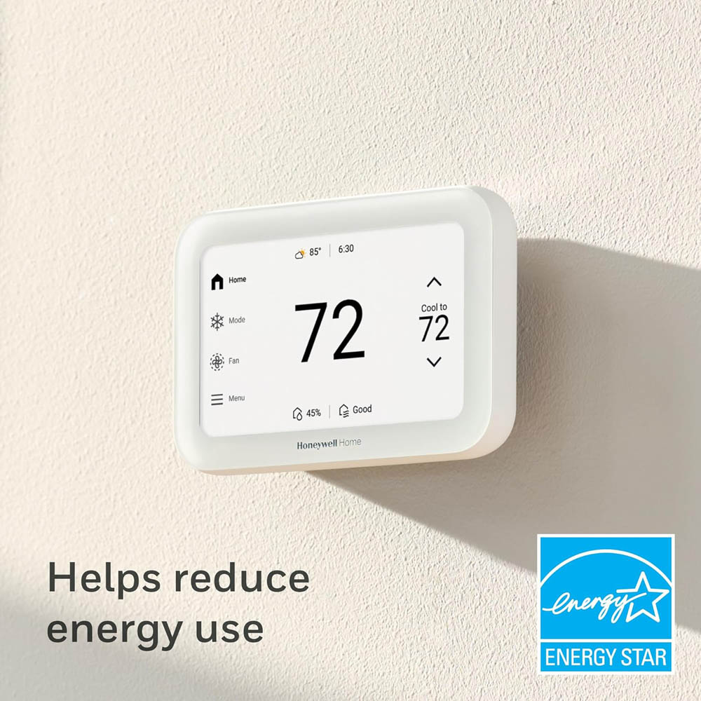 Experience a new level of comfort with the Honeywell Home X8S Smart Thermostat. It combines convenience, energy efficiency, and advanced technology to enhance your living space. The sleek 5" touchscreen display offers superb visibility and customizable color and style options, allowing you to match the thermostat's look to your home decor.